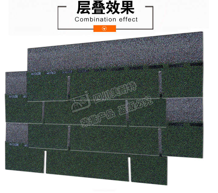 本款产品颜色丰富,立体感强,一般适用于广泛应用于高档别墅、高档小区、政府安置工程,学校工程等工程,产品可自由裁剪,能成功覆盖于不同形状和不同基层的屋顶。适用屋面坡度从15°到90°不同建筑。