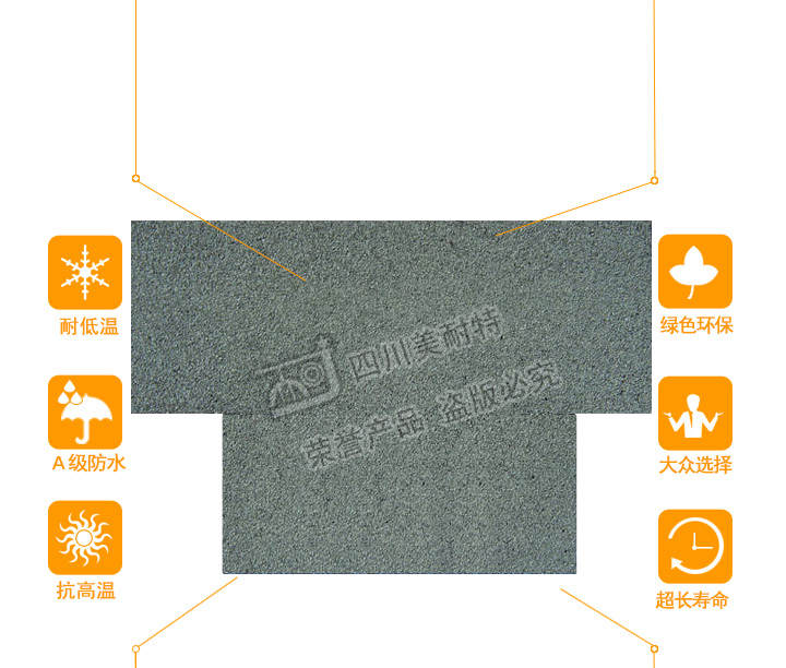 本款产品颜色丰富,一般适用于广泛应用于高档别墅、高档小区、政府安置工程,学校工程等工程,产品可自由裁剪,能成功覆盖于不同形状和不同基层的屋顶。适用屋面坡度从15°到90°不同建筑。