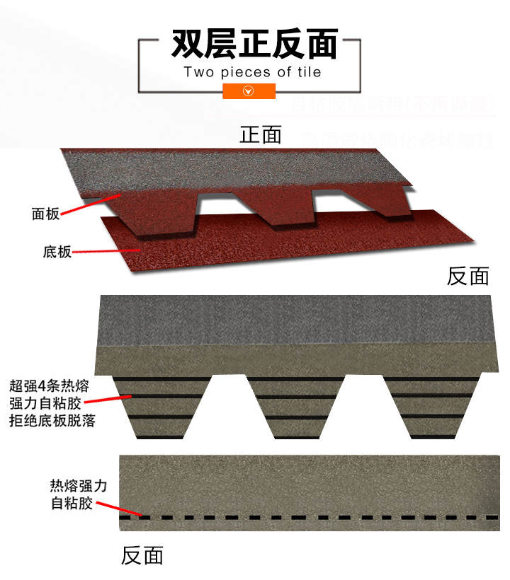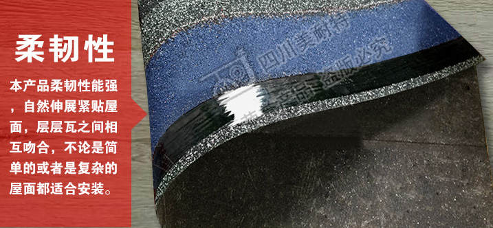 本款产品颜色丰富,立体感强,一般适用于广泛应用于高档别墅、高档小区等工程,产品可自由裁剪,能成功覆盖于不同形状和不同基层的屋顶。适用屋面坡度从15°到90°不同建筑。